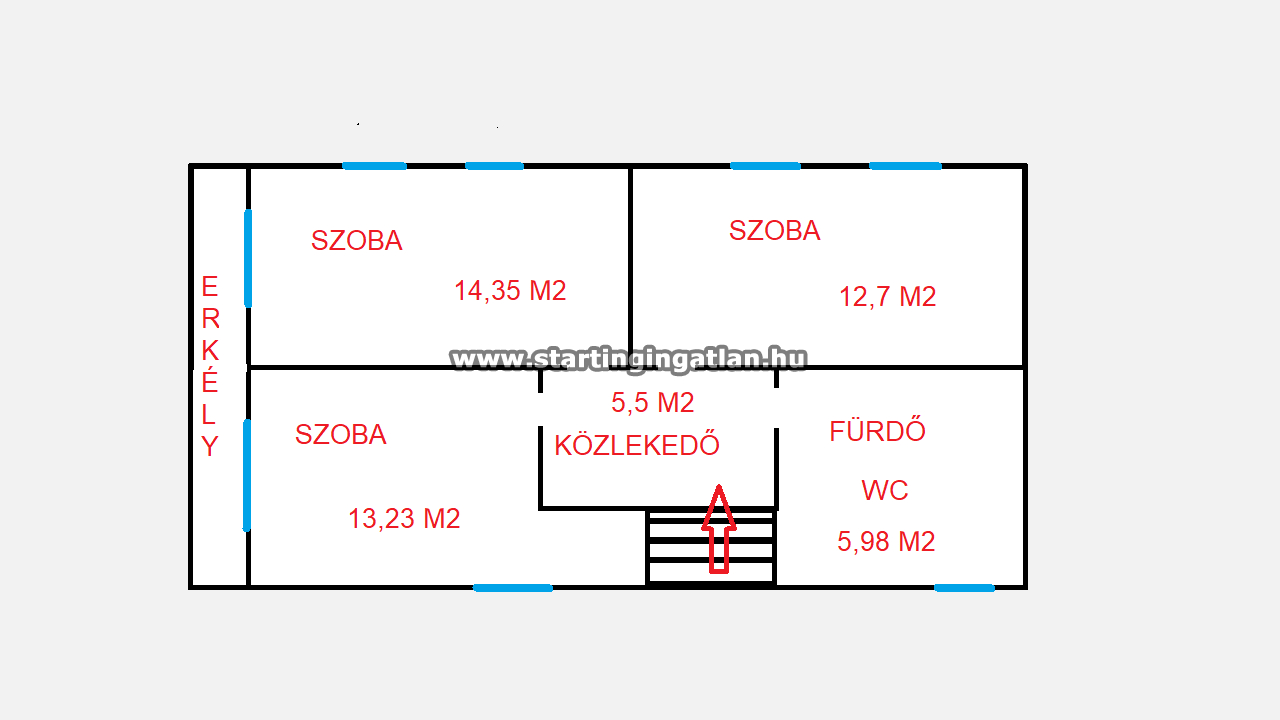 Az emeleti szinten további három kényelmes méretű szoba biztosítja a család minden tagja számára a saját életteret, melyek közül kettő közvetlen kijárattal rendelkezik a hangulatos, 10 m²-es erkélyre. A ház kialakítása minden szinten a komfortot szolgálja: mindkét fürdőszoba jól felszerelt, így a mindennapi rutin gördülékenyen zajlik.